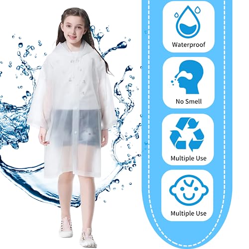 Gerhannery 2 stuks regenponcho voor kinderen, waterdicht, herbruikbare regencape voor kinderen met capuchon, lichte EVA-regenponcho, regenjas voor kinderen