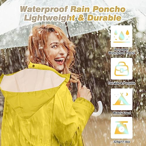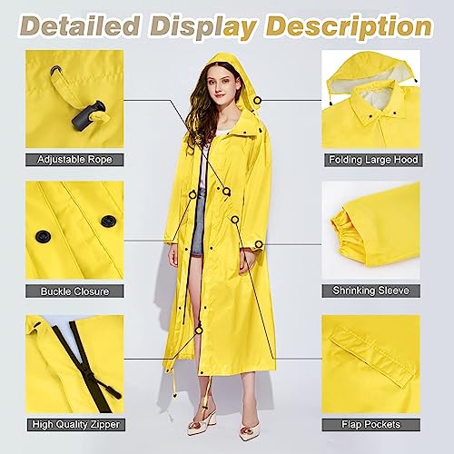 Lama Lange damesregenjas met capuchon, waterdicht, herbruikbaar, opvouwbaar, lange mouwen, voor volwassenen,voor dames, voor op de fiets, motor, tijdens paardrijden, wandelen, trektochten, Geel, L